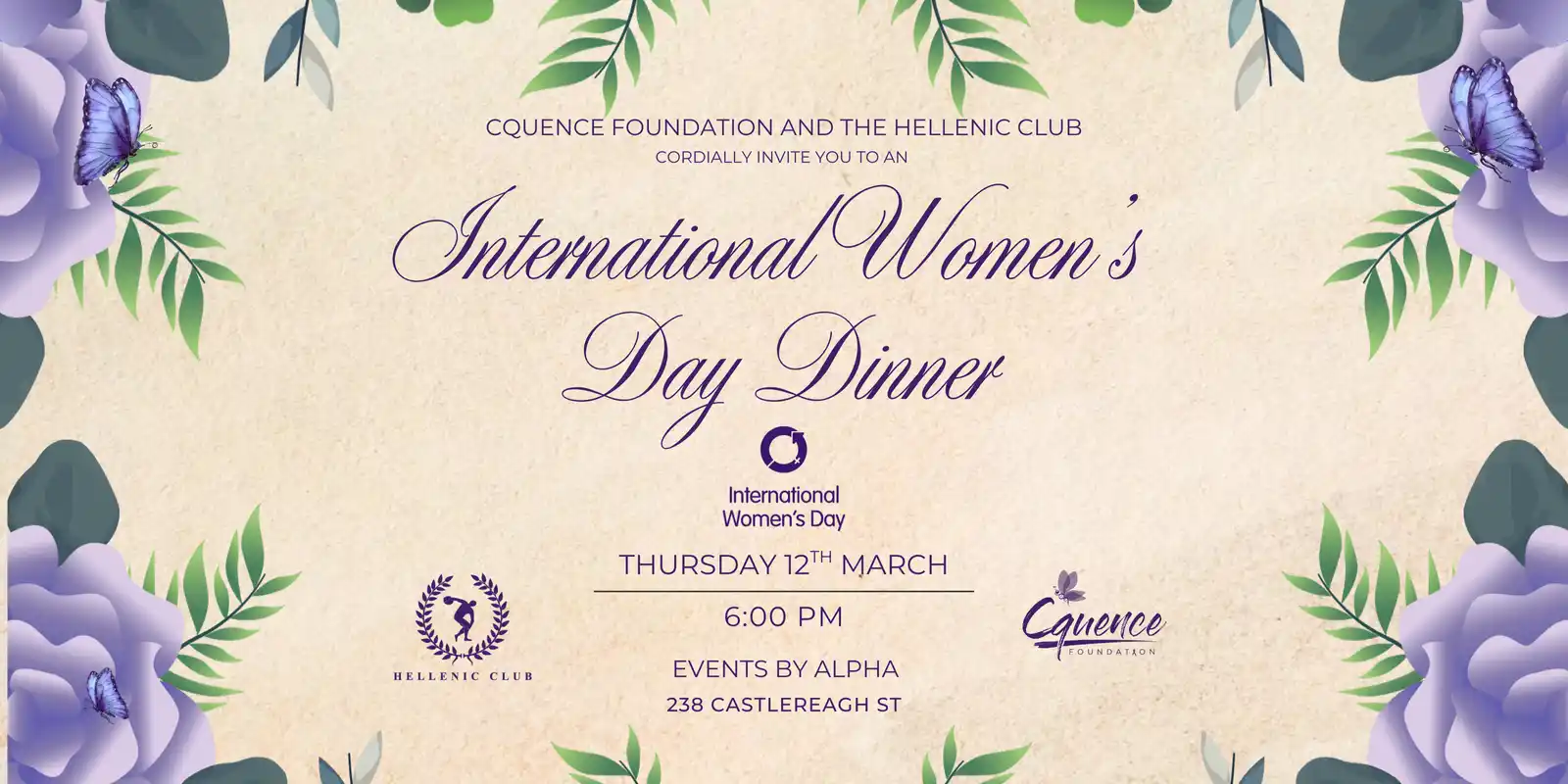The Hellenic Club is proud to partner with Cquence Foundation to invite you to a special International Women's Day Dinner on 12 March 2026 at Events by Alpha.